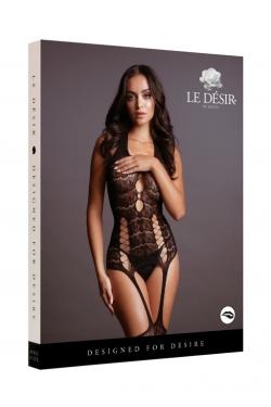 Lace Suspender Bodystocking - боди-комбинезон на бретельках с имитацией пояса и чулок. Дизайн в виде кружевного рисунка дополнен округлыми вырезами и вырезами со шнуровкой.