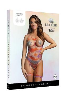 Грация в сеточку с открытыми чашечками, ремешками у выреза горловины и открытым шаговым швом. Ко грации прилагаются гартеры. Также великолепно сочетается с топом бикини и шортами деним для крутого наряда. Этот боди-комбинезон имеет размер S-XL. Стринги не включены.В комплект входят наклейки на грудь.