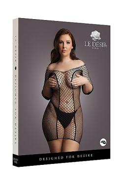 Мини-платье в сетку с короткими рукавами 3/4 и широкой сетчатой врезкой с каймой в середине. Мягкая ткань подойдет размерам от XL до 4XL.