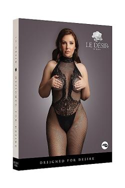 Кружевной боди-комбинезон в сетку с американской проймой и разомкнутым хлястиком. Мягкая сверхрастяжимая ткань подойдет размерам от XL до 4XL.
