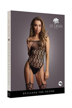 Боди-комбинезон с имитацией чулок. Дизайн в виде сетки дополнен ромбообразным рисунком.