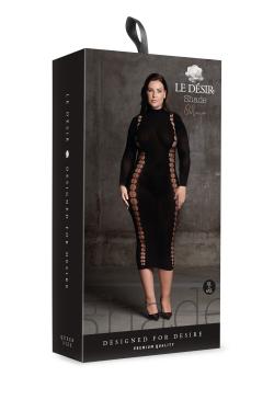 Шикарное длинное платье с высоким воротом. Изделие изготовлено из плотной сетки и декорировано красивым сексуальным узором притягивающим взгляд. Такое белье скрывает недостатки, подчеркивает достоинства фигуры и будет шикарно смотреться как с публичным нарядом, так и в спальне.