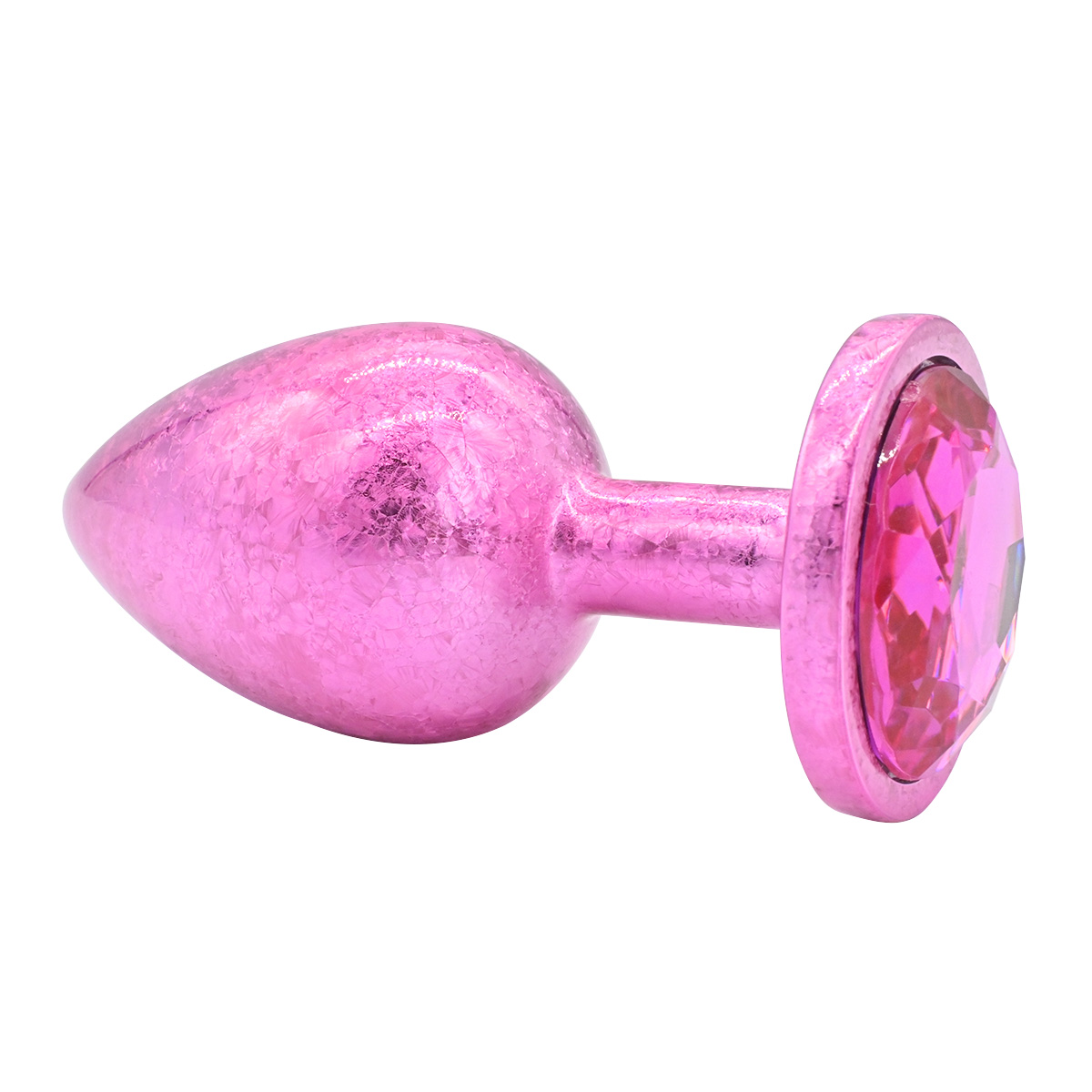 Литая анальная пробка имеет конусообразную форму и гладкую фактуру шлифованного металла. Легкий и прочный алюминиевый сплав гарантирует долговечность и гигиеничность. Крупный граненый кристалл в основании имеет специальное светоотражающее покрытие дна для усиления блеска и более яркого и красочного вида.